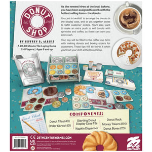 • Donut Shop is a board game where players take on the role of new hires at a local bakery, tasked with arranging and selling the hottest items – donuts.