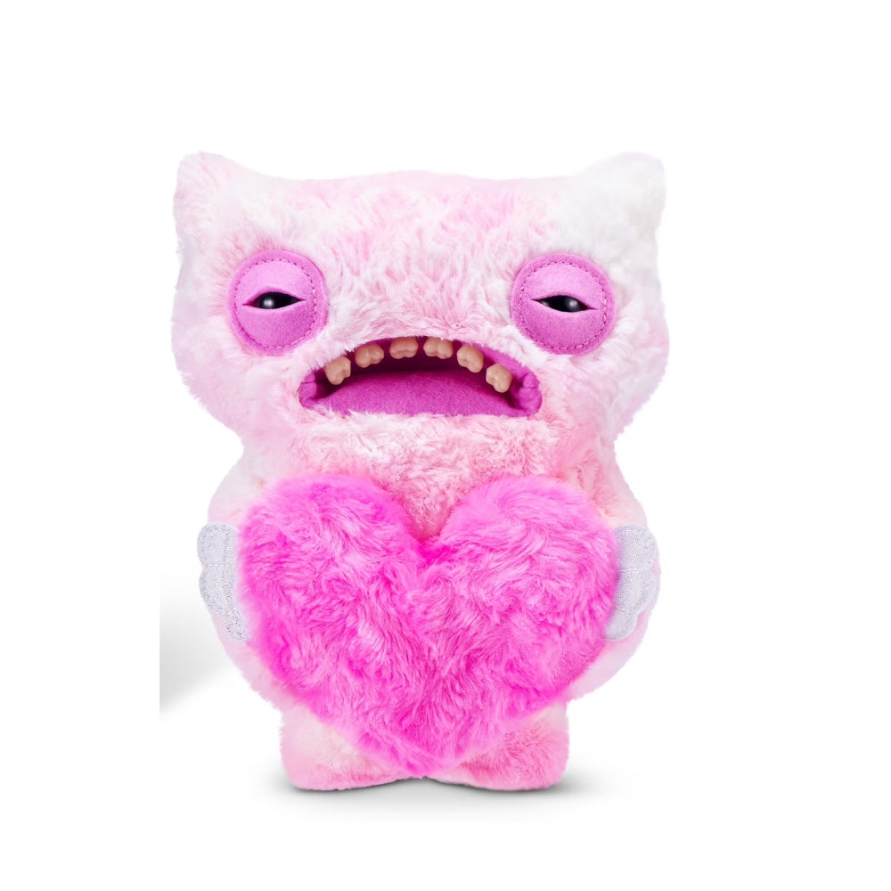 Featuring fluffy light pink fur, expressive half-lidded eyes, and those iconic human-like Fuggler teeth, this lovable weirdo holds a soft pink heart — making it the perfect offbeat romantic gift. It’s sweet, slightly awkward, and completely unforgettable.