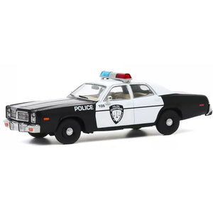 Brand new 1/43 scale diecast car model of 1977 Dodge Monaco White and Black "Police Department City of Roseville" die cast model car by Greenlight. Limited edition. Brand new box. Chrome accents. Real rubber tires. True-to-scale detail. Authentic decoration. Detailed interior, exterior. Does not have any openings. Comes in plastic display showcase. Made of diecast with some plastic parts. Dimensions approximately L-5 inches long.
