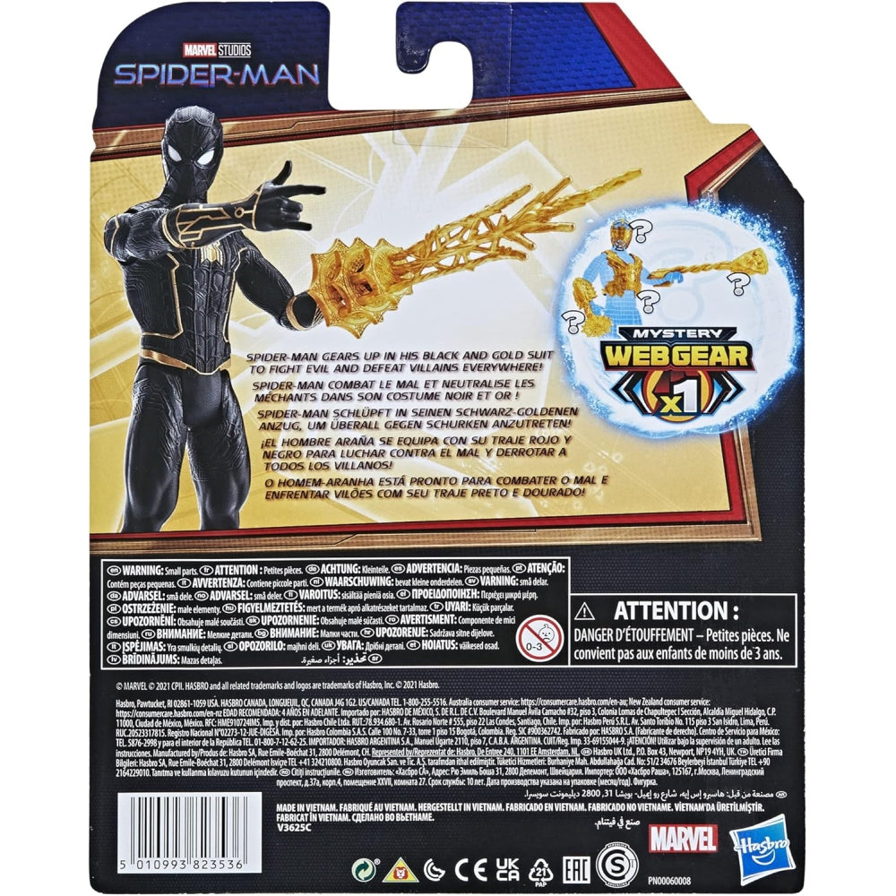 Unmask the adventure with the Marvel Spider-Man Mystery Web Gear 6″ Action Figure! This movie-inspired collectible brings your friendly neighborhood hero in a sleek black and gold suit — perfect for action play and display.