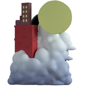 - Perched on a red brick ledge at over 4 1/2-inches tall with each outstretched hand hovering over a curling gargoyle, a large smoke cloud billows out from behind him to weave up around the tall buildings and shining full moon.