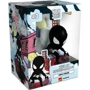 - The exterior of the packaging shows a struggling Symbiote as a large clock bells clang loudly around them, while the interior is covered in light grey panels of Marvel comics.